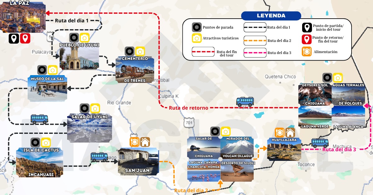 Por la noche deberá tomar el bus La Paz- Uyuni a las 8:45 pm.